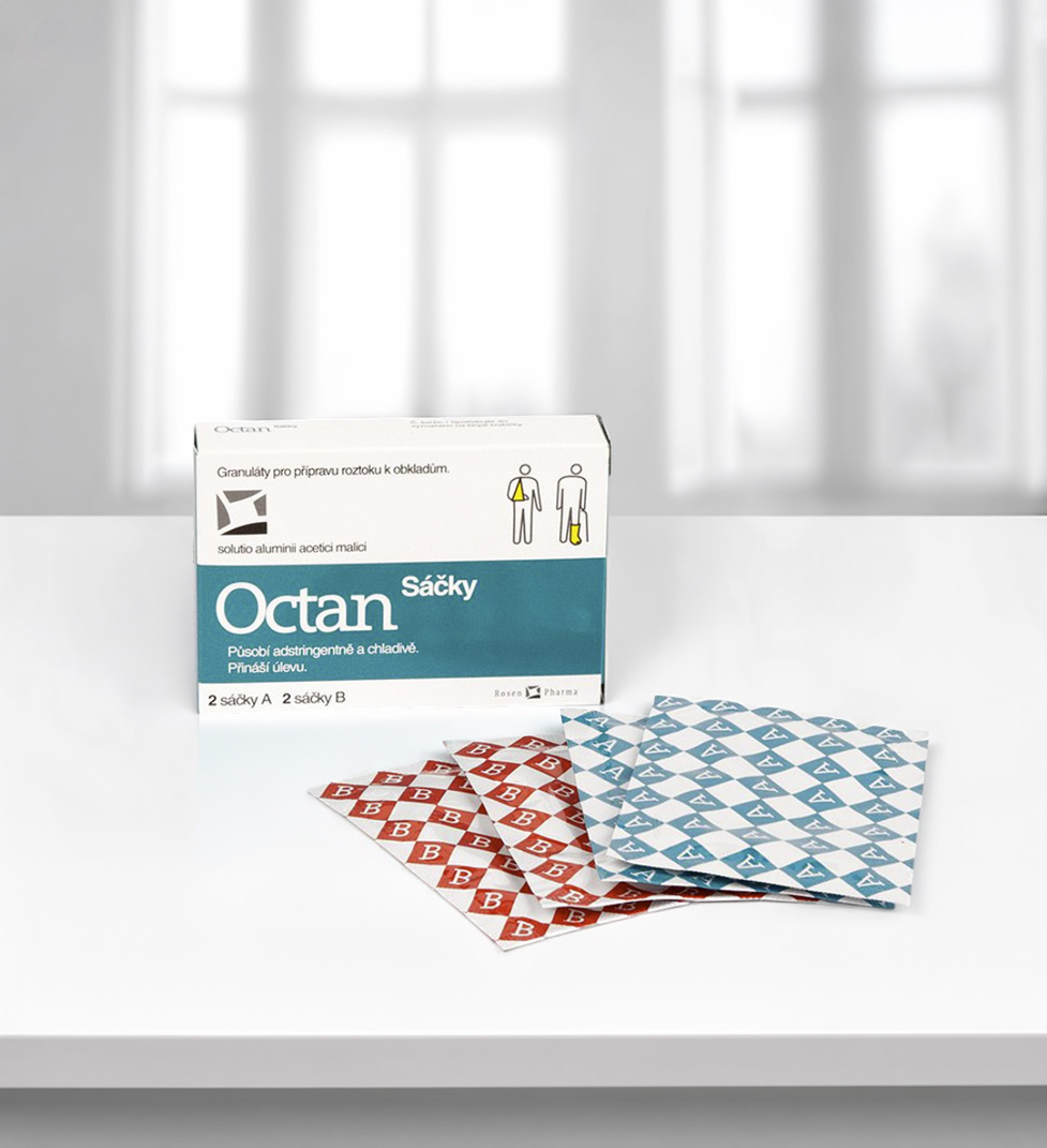 Octan sáčky obsahují granulát určený k přípravě roztoku pro zevní aplikaci formou obkladů. Připravený roztok působí adstringentně a poskytuje výrazný chladivý a osvěžující efekt na pokožku.